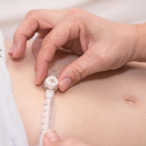 HOW IT WORKS: A feeding tube is placed through the abdominal wall into the stomach using imaging guidance.