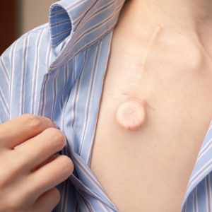 HOW IT WORKS: A small device is implanted under the skin and connected to a vein for easy medication access.